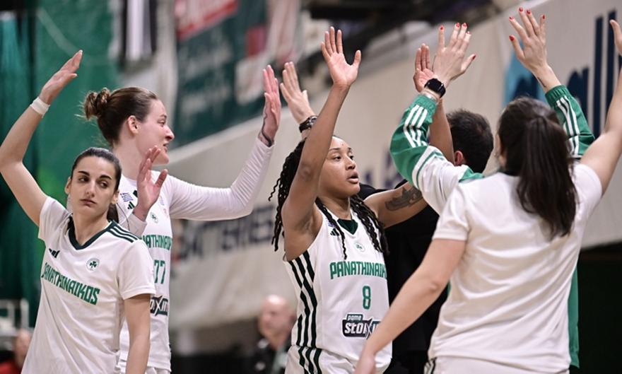 Αφεντικό στο ντέρμπι και αγκαλιά με την πρόκριση ο Παναθηναϊκός. Οι «πράσινες» επικράτησαν 90-70 του Ολυμπιακού στο «Παύλος Γιαννακόπουλος» και είναι ένα βήμα από το εισιτήριο για τους τελικούς στο Μπάσκετ Γυναικών.
