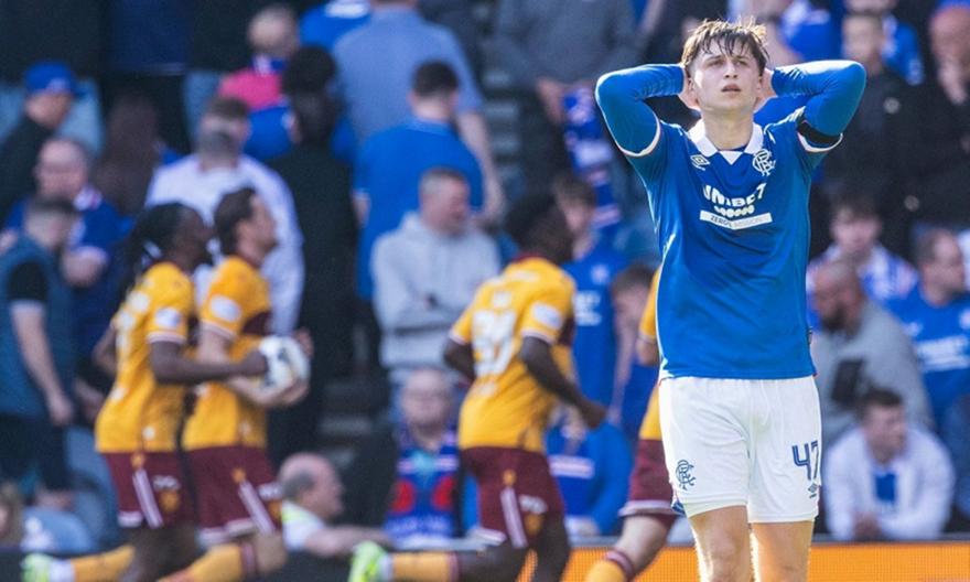 Η Ρέιντζερς είδε τις ελπίδες της για τον τίτλο να δέχονται σοβαρό πλήγμα, καθώς γνώρισε εντός έδρας ήττα 3-2 από τη Μάδεργουελ στο Άιμπροξ και υποχώρησε στην τρίτη θέση της Premiership με 69 βαθμούς.