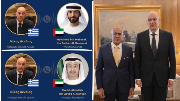 Ο υπουργός Εθνικής ‘Αμυνας Νίκος Δένδιας είχε τηλεφωνική επικοινωνία με τον υπουργό ‘Αμυνας των Ηνωμένων Αραβικών Εμιράτων (ΗΑΕ) Mohamed bin Mubarak bin Fadhel Al Mazrouei και τον υπουργό Εξωτερικών Sheikh Abdullah bin Zayed Al Nahyan, ενώ συναντήθηκε στο υπουργείο Εθνικής ‘Αμυνας με τον πρέσβη των ΗΑΕ, Dr. Ali Obaid Ali Alyabhouni Aldhaheri, στο πλαίσιο της Συμφωνίας για τη Συνεργασία των δύο χωρών στην Εξωτερική Πολιτική και ‘Αμυνα.