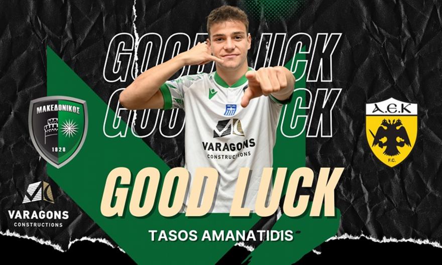 Η διοίκηση της ΠΑΕ Μακεδονικός βρίσκεται στην ευχάριστη θέση να ανακοινώσει την μεταγραφή του 17χρονου ποδοσφαιριστή του συλλόγου, Αναστάσιου (Τάσου) Αμανατίδη στην ΠΑΕ ΑΕΚ!