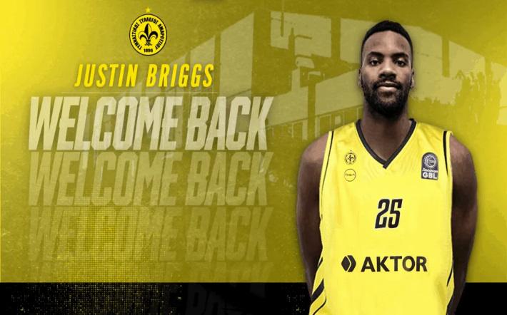«Η ΚΑΕ Γ.Σ. ΑΜΑΡΟΥΣΙΟΥ 1896 ανακοινώνει την επιστροφή του Justin Briggs (28, 2.08). O Αμερικανός σέντερ, αγωνίστηκε και πέρυσι στην ομάδας μας , στην τελευταία φάση της σεζόν, συμβάλλοντας τα μέγιστα στην επίτευξη του στόχου της παραμονής. Έτσι επιλέχθηκε και πάλι, για να ενισχύσει την γραμμή των ψηλών. Στους 9 αγώνες (4 κανονική περίοδος, 5 playouts) που αγωνίστηκε με την φανέλα του Αμαρουσίου , κατέγραψε κατά μέσο όρο 7,2 πόντους, 5,3 ριμπάουντ και 1,5 τάπες.