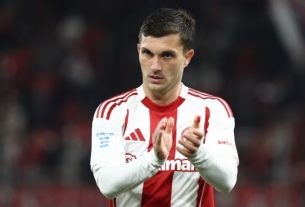 Θυμίζουμε πως ο 52χρονος Έλληνας τεχνικός έχει αναλάβει τις τύχες της ομάδας από την περασμένη Τρίτη, έχοντας πραγματοποιήσει σε αυτό το διάστημα τις πρώτες του προπονήσεις, με αποτέλεσμα την ερχόμενη Κυριακή (01/03) να κάνει το ντεμπούτο του στον πάγκο στο εκτός έδρας ματς κόντρα στον Παναθηναϊκό.