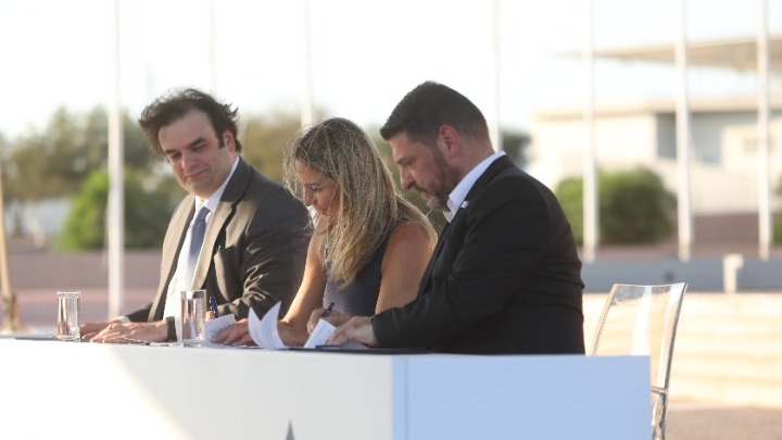 Στην υπογραφή της σύμβασης παραχώρησης του Κλειστού Ολυμπιακού Γηπέδου Φαλήρου (Tae Kwon Do) προχώρησαν σήμερα η διευθύνουσα σύμβουλος της Εταιρείας Ακινήτων Δημοσίου (ΕΤΑΔ) Ηρώ Χατζηγεωργίου και ο περιφερειάρχης Αττικής Νίκος Χαρδαλιάς, παρουσία του υπουργού Εθνικής Οικονομίας και Οικονομικών Κυριάκου Πιερρακάκη.