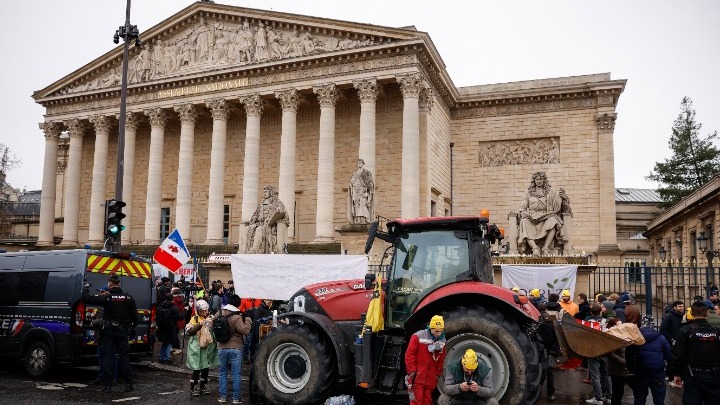 Η διαμαρτυρία αυξάνει την πίεση στον πρόεδρο Εμανουέλ Μακρόν και την κυβέρνησή του μία ημέρα προτού τα κράτη μέλη της ΕΕ ψηφίσουν σχετικά με την εμπορική συμφωνία. Χωρίς πλειοψηφία στο κοινοβούλιο, τυχόν λάθος πολιτικής από τον Μακρόν κινδυνεύει να προκαλέσει μια επικίνδυνη πρόταση μομφής στο Σώμα.