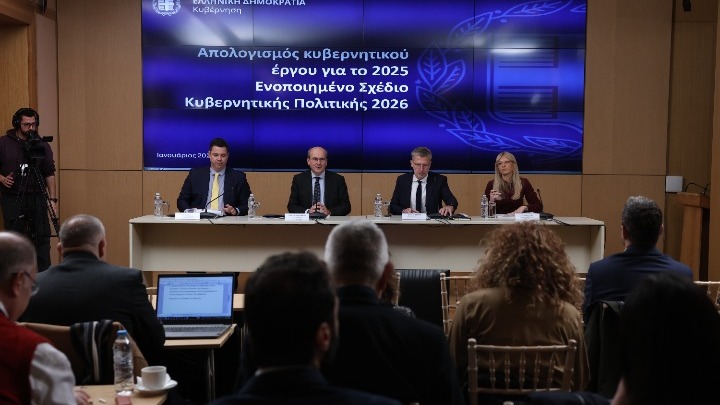 Στην πλήρη χαρτογράφηση των μεγάλων πρωτοβουλιών, μεταρρυθμίσεων, αλλά και έργων για το τρέχον έτος προχώρησε η κυβέρνηση -και εν είδει δέσμευσης προς τους πολίτες όπως πολλάκις αναφέρθηκε- μέσω της συνέντευξης Τύπου που έδωσαν ο αντιπρόεδρος της κυβέρνησης, Κωστής Χατζηδάκης, ο υπουργός Επικρατείας, Άκης Σκέρτσος, ο υφυπουργός παρά τω πρωθυπουργώ, Θανάσης Κοντογεώργης και η γενική γραμματέας Συντονισμού, Εύη Δραμαλιώτη. Τίτλος της συνέντευξης ήταν: «Απολογισμός κυβερνητικού έργου για το 2025 – Ενοποιημένο σχέδιο κυβερνητικής πολιτικής 2026».