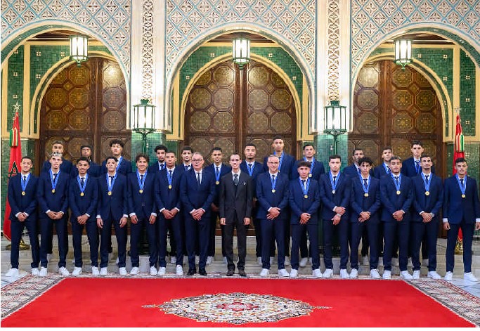 Με εντολή του βασιλιά της χώρας, Μοχάμεντ ΣΤ’, ο πρίγκιπας Μουλάι Χασάν προήδρευσε χτες στα ανάκτορα του Ραμπάτ τελετής που παρέθεσε ο βασιλιάς προς τιμήν των μελών εθνικής ομάδας ποδοσφαίρου Κ-20, η οποία επέστρεψε φέρνοντας στη χώρα το Παγκόσμιο Κύπελλο Ποδοσφαίρου στην κατηγορία τους.