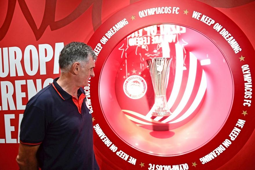 Στο μουσείο βρέθηκε και ο προπονητής των νταμπλούχων Ελλάδας Χοσέ Λουίς Μεντιλίμπαρ, με τον Βάσκο τεχνικό να βλέπει για πρώτη φορά εικόνες από τον μυθικό τελικό του Conference League, χωρίς να μπορεί αν κρύψει τη συγκίνηση του.