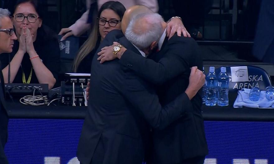 Το στιγμιότυπο όμως που έκλεψε την παράσταση δεν ήταν κάποιο καλάθι ή φάση, αλλά η αγκαλιά του Ζέλικο Ομπράντοβιτς με τον Βασίλη Σπανούλη.