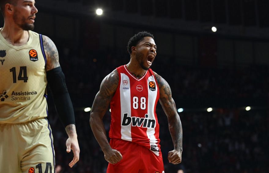 Την ξέφρενη κούρσα του Ιανουαρίου συνέχισε απτόητος ο Ολυμπιακός. Με «όπλο» την εκπληκτική του άμυνα στο τέταρτο δεκάλεπτο και με κορυφαίους τους Βεζένκοφ και Τζόουνς που έκαναν τα πάντα και συνέφεραν, οι Πρωταθλητές Ελλάδας υπέταξαν την Μπαρτσελόνα στο «καυτό» ΣΕΦ με 87-75 και ανέβασαν το φετινό τους ρεκόρ στο 16-8, πατώντας γερά στην πρώτη προνομιούχο τετράδα.